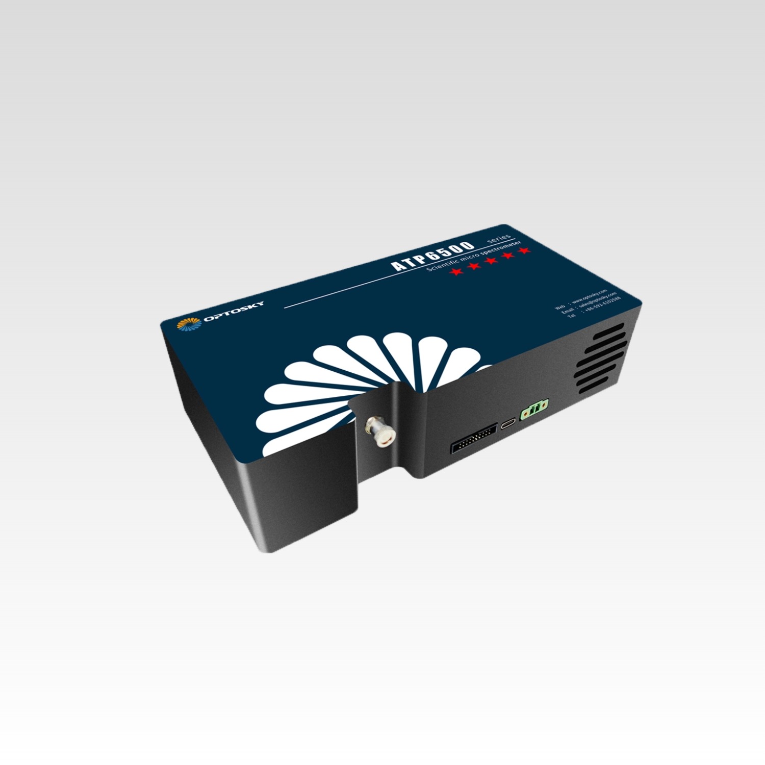 ATP6500是奥谱天成研制的超高性能制冷型微型光纤光谱仪,是性能的王者,它采用1044x64像素的制冷型背照式线性CCD,该CCD具有最大的动态范围,并采用了半导体制冷技术,降低了工作时的暗电流,CCD可工作在设定的恒温环境(最低可达-15°C),从而大幅降低了传感器的噪声,获得了极佳的信噪比(比同类竞争对手提高了约2倍),而且提高了ATP6500的测量可靠性,测量结果不随环境温度变化。同时,奥谱天成为ATP6500特别定制了超低噪声CCD信号处理电路,其量化噪声小于5counts,为业界最佳水平。ATP6500可接收SMA905光纤输入光或者自由空间光,通过USB2.0或者UART端口,输出测量所得的光谱数据。ATP6500只需要一个5V直流电源供电,非常便于集成使用。